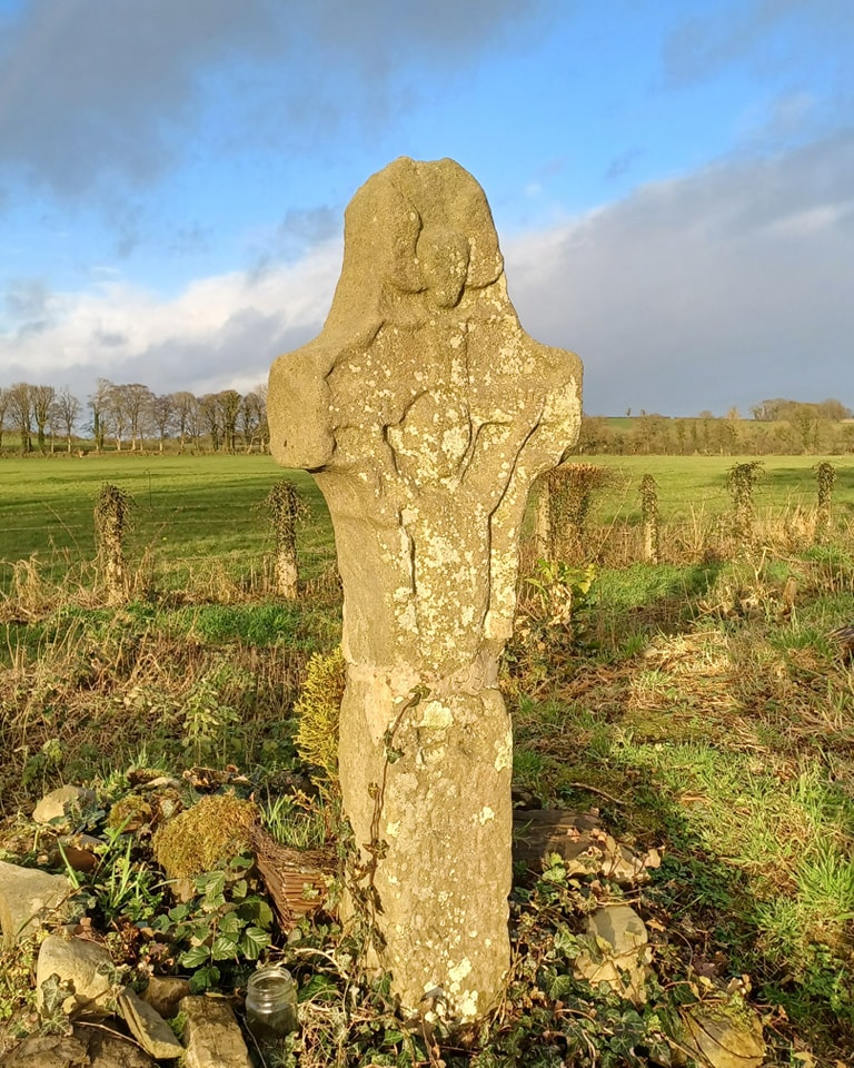 Aside from the grave slabs, the only other significant feature is a stone cross with an inscription dating to 1685, found in the laneway leading into the graveyard. The inscription reads: ‘SOVERAIN LORD KING JAMES THE SECOND BY THE GRACE OF GOD’.